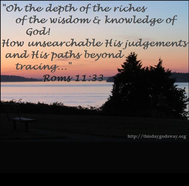 I read this verse about 20 years ago and ‘just knew’ it was my life verse. It was as if a huge “Yes!” spoke to my heart. Little did I know the ‘why’ behind the verse. Later when unexplainable health issues hit me, I began to live the verse, trusting that, truly, “His paths are beyond tracing”